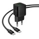 Адаптер мережевий HOCO C to C cable Ingenious PD charger set N65 |1USB/1Type-C, 20W/3A, PD/QC| black