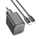 Зарядний пристрій Hoco Elogiado Dual-Port Charger N42 (2 Type-C, 45W, PD / QC, технологія GaN) Зарядний пристрій Hoco Elogiado N42-це сучасне і потужне рішення для швидкої зарядки ваших пристроїв. Завдяки двом портам Type-C і підтримці технології GaN, воно забезпечує високу ефективність при зменшених розмірах і низькому нагріванні. Підтримка швидкої зарядки з виходами 45W (PD/QC/FCP/AFC) і 25W + 20W для одночасної зарядки двох пристроїв — Ідеальний вибір для тих, хто цінує швидкість і зручність. Основні характеристики: Матеріал: Вогнестійкий пластик (PC) для забезпечення безпеки при використанні. Вихід: Type-C 1/2: 45W (PD/QC/FCP/AFC); Type-C1 + Type-C2 = 25W + 20W. Технологія: GaN-сучасна технологія для зменшення розмірів пристрою без втрати ефективності та безпеки. Тип вилки: Європейська вилка (EU plug). Розмір: 83 * 39 * 32 мм-компактний розмір, зручний для перенесення. Вага: 120 г — легке і ефективне. Додатково: Комплектується 1-метровим кабелем Type-C to Lightning для швидкої зарядки. Перевага: Швидка зарядка: Підтримка технологій PD, QC, FCP і AFC забезпечує високу швидкість зарядки для ваших гаджетів. Два порти: Можливість одночасної зарядки двох пристроїв завдяки двом портам Type-C (до 45W). Компактний і стильний дизайн: Малі розміри і сучасний зовнішній вигляд роблять зарядний пристрій зручним для використання вдома, в офісі або в дорозі. Технологія GaN: Менший розмір, менше нагрівання, більша ефективність і безпека при зарядці. Універсальність: Підходить для зарядки різних пристроїв, таких як смартфони, планшети, ноутбуки та інші гаджети з підтримкою Type-C. Для оптових покупців: Гнучкі умови співпраці: Спеціальні пропозиції для оптових закупівель. Швидка доставка: Оперативна доставка по всій Україні. Гарантія якості: Офіційна гарантія на товар і підтримка клієнтів. Вибирайте зарядний пристрій Hoco Elogiado N42 і отримаєте надійну і швидку зарядку для ваших пристроїв з сучасним дизайном і технологією GaN!