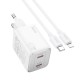 Адаптер мережевий Hoco Elogiado dual-port charger N42 (Type-C to Lightning Set) |2Type-C, 45W/3A, PD/QC| white