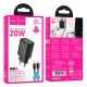 Адаптер мережевий HOCO gentle charger N61 (Type-C to Type-C set) |1USB/1Type-C, 20W/3A, PD/QC| black