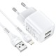 Опис Адаптер мережевий Hoco Lightning Cable Briar dual port charger set N8 |2USB, 2.4A| (Safety Certified) white