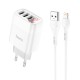 Адаптер мережевий Hoco Lightning cable Easy charge digital display charger set C93A |3USB, 3.4A| white