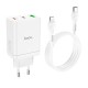Опис Адаптер мережевий Hoco Type-C to Lightning Cabel Start three-port charger N33 |1USB/2Type-C, PD/QC, 35W/3A| white