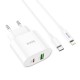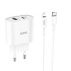 Адаптер мережевий Hoco Type-C to Lightning Cable Lineal C95A |1USB/1Type-C, PD/QC, 20W/3A| white