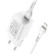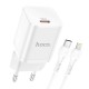 Адаптер мережевий HOCO Type-C to Lightning cable Rigorous charger set N19 |Type-C, 25W, 3A, QC/PD| white