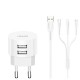 Опис Адаптер мережевий USAMS Kit Sing-Tu Dual USB Round Travel 3in1 cable T20 |2USB, 2.1A| white