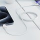 Характеристики: - Тип: кабель для заряджання та передачі даних - Роз’єми: USB‑C to USB‑C - Максимальний струм: до 3 А - Матеріал обплетення: нейлон - Матеріал конекторів: алюміній - Колір: білий - Сумісність: пристрої з портом USB‑C