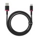 Характеристики: - Тип: кабель для заряджання та передачі даних - Роз’єми: USB (A) — Type‑C - Максимальна потужність: до 60 Вт - Підтримка швидкої зарядки: так (протоколи швидкої зарядки) - Швидкість передачі даних: до 480 Мбіт/с - Довжина: 1 м - Матеріал обплетення: нейлон - Колір: Red+Black (червоний/чорний) - Додатково: вбудований смарт‑чіп контролю струму та напруги, фіксатор для кабелю в комплекті