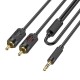 Основні характеристики: - Довжина: 1.5 м - Вага: 32 г - Матеріал обплетення: високоеластичний PVC - Жила: емальований мідний дріт 3C100.1, товщина OD3.5 мм - Конектори: 3.5 мм (male) → 2x RCA (double lotus), позолочені штекери