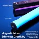 Переваги - Універсальність «все-в-одному»: CCT для базового світла, RGB для кольорових сцен, FX для динамічних ефектів. - Висока точність кольору (CRI 97+ / TLCI 97+) для професійного контенту без складної постобробки. - Надширокий діапазон 1800–9000K: від теплого бурштину до холодного білого. - Миттєве кріплення на метал завдяки вбудованим неодимовим магнітам. - Гнучкий монтаж: різьблення 1/4" на двох торцях, можливість з’єднувати кілька ламп у лінію. - Мобільність: вбудований акумулятор і зарядка через USB Type-C. - Зручне налаштування параметрів через OLED-дисплей.
