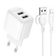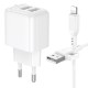 Мережевий зарядний пристрій з кабелем BOROFONE BAS41A Potential dual-port charger set(iP) White