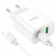 Опис Мережевий зарядний пристрій з кабелем HOCO C80A Plus Rapido PD20W+QC3.0 charger set(C to iP) White