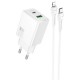 МЗП Hoco N71 Nuevo PD30W+QC3.0 (1USB-A/1C) + кабель Type-C to Lightning White