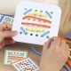 Опис товару Ummi 22050 Competition Sew Fast White — настільна інтерактивна гра на швидкість, спритність і уважність для двох гравців. Завдання — якомога швидше повторити візерунок з картки, протягуючи кольорові нитки через отвори на ігровій дошці. Гра має 4 рівні складності: від простих схем до більш заплутаних, що ускладнюють виконання та роблять кожну партію цікавою.