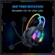 Характеристики: - Тип: ігрові навушники (гарнітура), дротові - Підключення: 3.5 мм + USB (підсвітка) - Підсвітка: RGB - Колір: чорний - Конструкція: накладні/повнорозмірні, закритого типу - Призначення: ігри, спілкування, мультимедіа