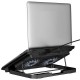 Переваги: - Ефективне охолодження завдяки швидкості повітряного потоку 1300 ± 10% RPM - Підходить для ноутбуків з діагоналлю 12–17 дюймів - Регулювання висоти на 1–7 рівнів для зручного положення екрана та рук - Прихована перегородка для захисту від зісковзування ноутбука - Міцний і зносостійкий корпус із PC+ABS - Оптимальні габарити та вага для використання вдома й в офісі