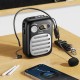 Характеристики: - Тип: портативна акустична система з дротовим мікрофоном - Потужність: 5 W - Динамік: 76 мм - Бездротове підключення: Bluetooth 5.4 - Чіп: Blue trum AB5702B - Підтримка носіїв: USB‑флешка, TF‑карта - Дротові інтерфейси: AUX - Функції: підсилення дротового мікрофона, відтворення запису - Акумулятор: 1200 mAh - Час роботи: 4–5 годин - Час заряджання: близько 2 годин - Колір: Black (чорний)