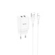 Адаптер сетевой HOCO Type-C to Type-C Cable Lucky dual-port charger set C111A |1USB/1Type-C, 30W/3A, PD/QC|