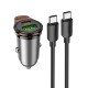 Автомобильное зарядное устройство HOCO NZ16A Rigorous 43W, двухпортовое PD25W+QC3.0, комплект автомобильного зарядного устройства (C to C), Metal Grey