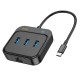 HUB адаптер HOCO Easy link 4-in-1 Gigabit Ethernet Adapter HB35 (Type-C to USB3.0x3+RJ45)(L=0.2M) black