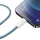 Характеристики: - Тип: кабель для зарядки и передачи данных - Разъемы: USB Type-C — Lightning (iP) - Поддержка быстрой зарядки: Power Delivery (PD) - Максимальная мощность: 20W - Скорость передачи данных: до 480 Мбит/с - Длина: 1 м - Цвет: Blue (синий) - Назначение: зарядка и синхронизация iPhone/iPad с устройствами/адаптерами USB Type-C