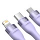Кабель Baseus серии Flash Ⅱ One-for-three для быстрой зарядки и передачи данных USB — M+L+C, 100 Вт, 1,2 м, фиолетовый