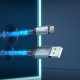 Кабель HOCO U112 Shine charging data cable for Type-C Gray — надежный кабель для зарядки и передачи данных в стильном, необычном дизайне. По всей длине кабель подсвечивается градиентной RGB-подсветкой, что создает приятный визуальный эффект и облегчает использование в условиях слабого освещения. Конструкция без внешней общей оплетки: каждая переплетенная медная жила имеет индивидуальную изоляцию из ПВХ, устойчивую к заломам и разрывам. Разъемы выполнены из коррозионностойкого металла, а корпуса — из прочной комбинации пластика и алюминиевого сплава, с закругленными гранями и плавными изгибами для уменьшения нагрузки в местах сгиба.