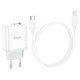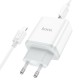 Описание Сетевое зарядное устройство с кабелем HOCO C105A Stage, комплект зарядного устройства с двумя портами PD20W+QC3.0 (C to iP) (EU), белый
