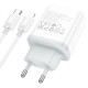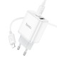 Сетевое зарядное устройство с кабелем HOCO C105A Stage, комплект зарядного устройства с двумя портами PD20W+QC3.0 (C to iP) (EU), белый