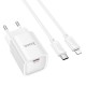 Сетевое зарядное устройство с кабелем HOCO C148A Charm, однопортовый комплект зарядки PD30W (C to iP) (EU), белый