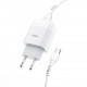 Сетевое зарядное устройство с кабелем HOCO C72A Glorious, комплект с однопортовым зарядным устройством (Type-C) 10,5 Вт, белый
