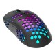 Компьютерная мышь MARVO G961 быстро и точно реагирует на нажатия, предоставляя высокую продуктивность во время игры. Модель также идеально подойдёт для учёбы и работы. Подключение к ПК и другим устройствам осуществляется с помощью плетёного кабеля USB длиной 1.6 метра. Мышка имеет 6 программируемых кнопок, которые можно перенастроить под индивидуальные потребности. Бесшумные щелчки дают возможность лучше сосредоточиться на игровом процессе и не мешать окружающим. Инновационный оптический сенсор Pixart 3327 обеспечивает высокую плавность и точность нажатий клавиш. Регулирование чувствительности (от 400 до 12000 DPI) позволяет Вам настроить мышку для выполнения любой задачи. Мышь удобно лежит в руке и не приносит дискомфорта даже при длительном использовании. Яркая и атмосферная RGB подсветка, напоминающая соты, придаёт устройству уникальный внешний вид. Характеристики: макс. частота опроса: 1000 Гц; чувствительность: 400-800-1600-2400-3200-7000-9000-12000 DPI; длина кабеля: 1.6 м; подсветка RGB: 7 режимов; вес изделия: 75 г.