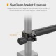 Переваги: - Надійне кріплення: затискач + гвинтова фіксація для стабільної роботи без люфтів - Легка та зносостійка алюмінієва конструкція - Дві секції з кульковим підшипником для гнучкого позиціонування - Універсальна різьба 1/4" для широкої сумісності з аксесуарами - Підходить для зйомок, стримів, навчання та відеоконференцій