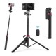 Переваги: - Формат 2-в-1: монопод і штатив в одному аксесуарі - Компактний, легкий та зручний для транспортування - Регулювання висоти 38 см – 1,85 м для різних сценаріїв зйомки - Кульова головка 360° та нахил до 180° для точного вибору ракурсу - Перемикання між горизонтальною та вертикальною зйомкою - Нековзка опора для стабільності на різних поверхнях - Подвійний «холодний башмак» для підключення мікрофона/світла - Дистанційне керування зйомкою пультом до 10 м - Широка сумісність завдяки різьбі 1/4"