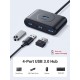 Характеристики - Модель: UGREEN CR113 - Тип: USB‑хаб (концентратор) - Інтерфейс підключення: USB 3.0 - Кількість портів: 4 - Максимальна швидкість передачі даних: до 5 Гбіт/с - Довжина кабелю: 1 м - Колір: чорний - Живлення: від USB (без окремого адаптера) - Примітка: синхронізація планшетів можлива, заряджання може не підтримуватися; деякі бездротові 2,4 ГГц, MIDI та окремі USB 3.0 пристрої можуть працювати нестабільно — за потреби використовуйте порт хоста або USB 2.0.
