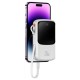 Переваги: - Компактний формат і мала вага — зручно носити щодня та брати в подорожі - Швидка зарядка: підтримка QC 3.0, PD 3.0, Huawei SuperCharge - Потужність до 22,5 W для швидкого відновлення заряду гаджетів - Одночасне заряджання кількох пристроїв - USB Type‑C до 20 W, USB Type‑A до 22,5 W - Вбудований кабель Lightning — заряджання без додаткових аксесуарів - Цифровий дисплей для контролю залишку заряду - Інтелектуальна подача енергії під потреби пристрою - Захист від перенапруги та короткого замикання