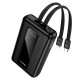 Переваги - Ємність 20000 mAh: кілька повних зарядок смартфона та підживлення інших гаджетів без частого підзаряджання павербанка - Швидка зарядка до 22.5 W та підтримка PD 20 W для сумісних пристроїв - 2 вбудовані кабелі: Type-C і Lightning — не потрібно носити окремі дроти - Цифровий дисплей: контроль рівня заряду та потужності заряджання в реальному часі - Універсальна сумісність: підходить для смартфонів, планшетів, навушників, електронних книг та інших пристроїв - Компактний, ергономічний дизайн із матовим покриттям