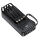 Переваги - Швидка зарядка до 22.5W (PD) для сумісних смартфонів та гаджетів - 4 вбудовані кабелі: USB, micro-USB, Lightning, Type‑C — зручно для різних пристроїв - Додатковий USB-порт для підключення власного кабелю - Заряджання самого пауербанка через Type‑C або через вбудований USB‑кабель - Цифровий дисплей показує залишок заряду у відсотках - Вбудований ліхтарик для використання в дорозі та в темний час доби - Захист від перезаряду, глибокого розряду та короткого замикання